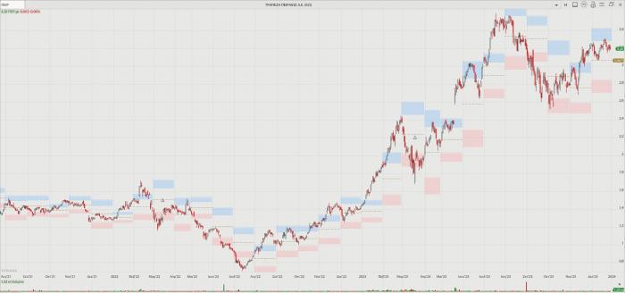 -- Τράπεζα Πειραιώς: Με την αντίστροφη μέτρηση για την διάθεση των μετοχών του ΤΧΣ σε επενδυτές να έχει ξεκινήσει, η μετοχή αναμένεται να βρεθεί στο επίκεντρο της προσοχής. Το επενδυτικό ενδιαφέρον είναι μεγάλο και στόχος της κυβέρνησης είναι να διατεθεί το σύνολο των μετοχών του Δημοσίου (27%). Η διοίκηση Χρ. Μεγάλου κατόρθωσε να πετύχει ένα από τα πιο εντυπωσιακά turnaround στόρι και πλέον με αιχμή τις ισχυρές επιδόσεις η τράπεζα φιλοδοξεί πολύ υψηλότερα. Το 2023 βρέθηκε στην κορυφή των αποδόσεων με +122,53%.
