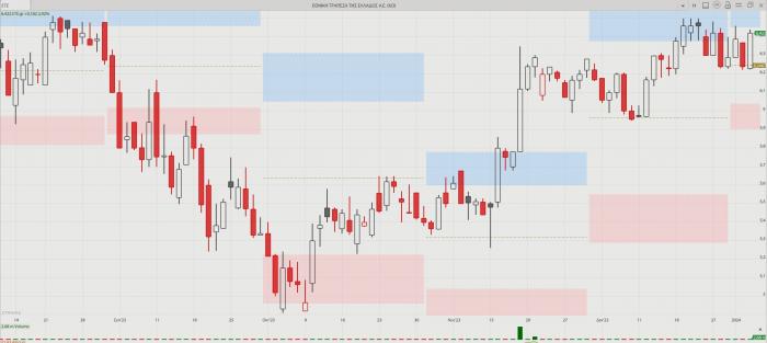 -- Viohalco: Καλό ξεκίνημα έτους με άνοδο 7,41% το τριήμερο, με ζητούμενο επίσης τη διάρκεια. Πιθανότατα υπάρχει μερική μετακίνηση θέσεων από τη Cenergy (που έδωσε ράλι +137% το 2023) σε Viohalco και ElvalHalcor.