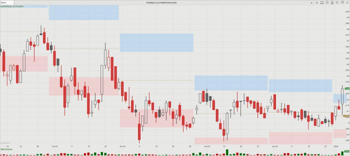 Η πορεία της μετοχής της Fourlis, 10 Αυγούστου 2023 - 4 Ιανουαρίου 2024