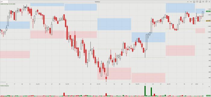 Η πορεία της μετοχής της ΕΧΑΕ, 4 Ιουλίου 2023 - 8 Ιανουαρίου 2024
