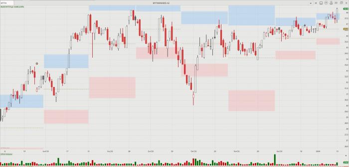 Η πορεία της μετοχής της Mytilineos, 1 Ιουνίου 2023 – 15 Ιανουαρίου 2024