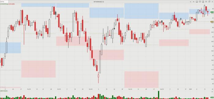 Η πορεία της μετοχής της Mytilineos, 12 Ιουλίου 2023 – 17 Ιανουαρίου 2024