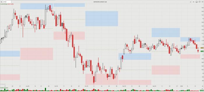 Η πορεία της μετοχής της Aegean, 12 Ιουλίου 2023 – 17 Ιανουαρίου 2024