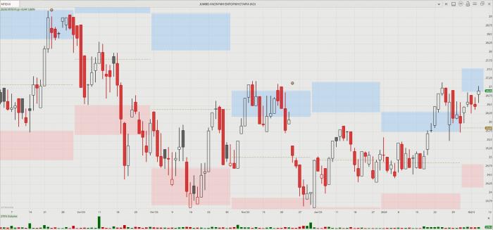 Η πορεία της μετοχής της Jumbo 3 Αυγούστου 2023 - 7 Φεβρουαρίου 2024