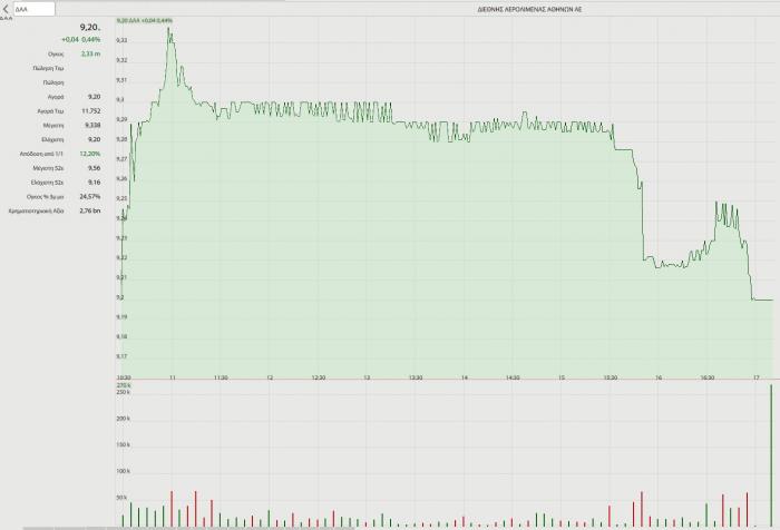 Η ενδοσυνεδριακή εικόνα της μετοχής του Διεθνούς Αεροδρομίου Αθηνών, 8 Φεβρουαρίου 2024