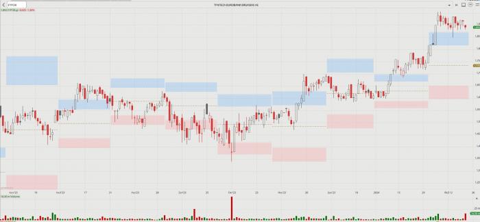 Η πορεία της μετοχής της Eurobank , 29 Μαΐου 2023 - 21 Φεβρουαρίου 2024