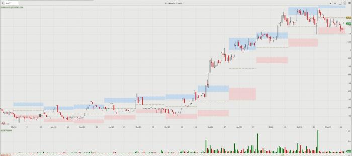 Η πορεία της μετοχής του ΟΛΠ, 18 Απριλίου 2023 - 28 Μαρτίου 2024