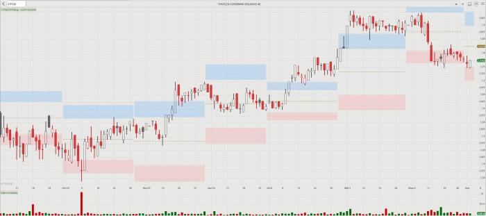 -- Optima Bank: Οδεύει πιθανότατα προς τον Mid Cap, καθώς αποτιμάται πλέον στα 625 εκατ. ευρώ, ενώ χθες ο τίτλος έκλεισε με νέα άνοδο 3,54% στα 8,49 ευρώ, που είναι νέα ιστορικά υψηλά. Μπήκε στα 7,20 ευρώ στις 4 Οκτωβρίου 2023.
