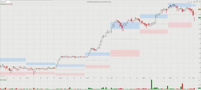 Η πορεία της μετοχής της Intrakat, 4 Σεπτεμβρίου 2023 - 3 Απριλίου 2024