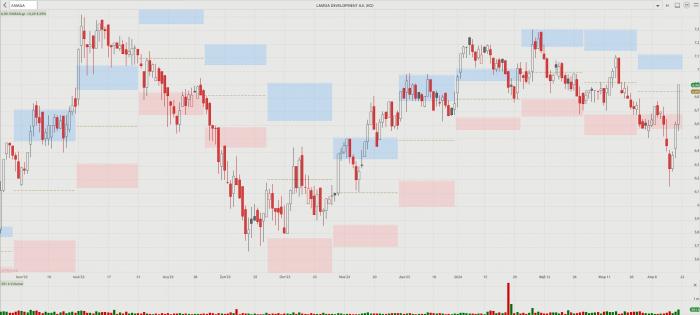 -- Lamda Development: Εντυπωσιακή την Παρασκευή, καθώς έκλεισε με άνοδο 4,39% στα 6,90 ευρώ, ενώ το τελευταίο τριήμερο ενισχύεται κατά 9,87% και είναι στην κορυφή της απόδοσης στο χώρο του Large Cap, κάτι που δεν συμβαίνει συχνά. Υπάρχει κινητικότητα στο Ελληνικό, δημοσίευσε απρόσμενα καλά αποτελέσματα, με ρεκόρ από Malls και Μαρίνες, αλλά και εντυπωσιακά έσοδα από τις πωλήσεις κατοικιών. Ζητούμενο για τη μετοχή η διάρκεια.
