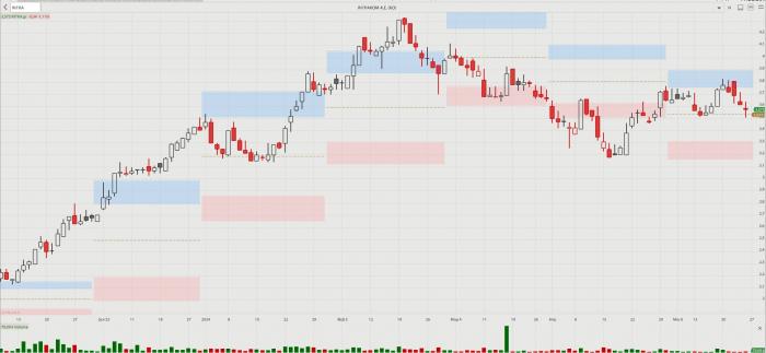 -- Τρ. Πειραιώς: Μετά από επτά διαδοχικά πτωτικές συνεδριάσεις αλλά χωρίς σημαντικές απώλειες, αντέδρασε με +0,85% την Παρασκευή, κλείνοντας στα 3,79 ευρώ. Η διοίκηση θα προτείνει στη γενική συνέλευση της 28ης Ιουνίου τη διανομή μερίσματος συνολικά 79 εκατ. ευρώ προς τους μετόχους (ήτοι 0,063 ευρώ ανά μετοχή). Η μετοχή είναι στο +0,40% το Μάιο και στο +18,44% το 2024. Η μετοχή κινείται εδώ και βδομάδες στη ζώνη 3,6 με 3,95 ευρώ και ολοένα και πιο πολύ ποντάρουν σε μια κίνηση επιστροφής προς τα 4 ευρώ.