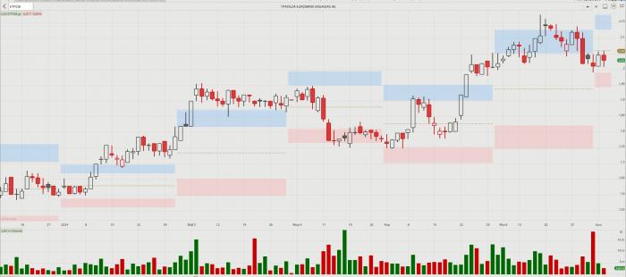 -- Σαράντης: Η μοναδική μετοχή του Large Cap που κινήθηκε και χθες όλη την ημέρα σε θετική τροχιά, ολοκληρώνοντας τη συνεδρίαση στο +1,99% και στα 11,26 ευρώ. Μολονότι τον Μάιο διόρθωσε κατά 7,73%, το 2024 ενισχύεται κατά 34,4%.