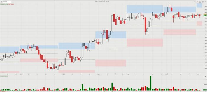 -- Eurobank: Διαχρονικά εμφανίζει την καλύτερη συμπεριφορά στον κλάδο και χθες έκανε επίδειξη δύναμης σε μια δύσκολη ημέρα. Η κίνηση κόντρα στο ρεύμα υποστηρίχθηκε από τα νέα στην Κύπρο, όπου εγκρίθηκε η αύξηση του ποσοστού συμμετοχής της στην Ελληνική Τράπεζα στο 55,3% ανοίγοντας τον δρόμο για την υποβολή δημόσιας πρότασης. Η Eurobank αυτή τη στιγμή έχει δύο μεγάλα πλεονεκτήματα. Το πρώτο είναι ο συνδυασμός ισχυρής – δεμένης διοικητικής ομάδας και ισχυρών μετόχων. Το δεύτερο πλεονέκτημα είναι το επιχειρηματικό μοντέλο που στηρίζεται σε τρεις πυλώνες: τραπεζικές εργασίας στην Ελλάδα, ισχυρό διεθνές αποτύπωμα και μεγάλη δραστηριότητα στο real estate, το οποίο «τρέχει» με χίλια. Στο -0,83% χθες η μετοχή, η μόνη του κλάδου που αντιστάθηκε στην... «κόκκινη» λαίλαπα. Στο +26,09 από την αρχή του έτους, έναντι 16,38% του δείκτη των τραπεζών και +10,27% του Γενικού Δείκτη.