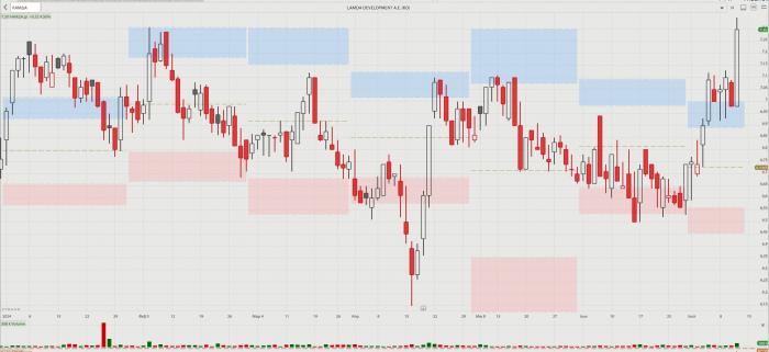 -- Lamda: Καιρό, πολύ καιρό, είχαμε να δούμε τέτοια ζωντάνια και τέτοια δύναμη στη μετοχή. Το χθεσινό +4,58% έρχεται σε συνέχεια της αισθητά βελτιωμένης συμπεριφοράς της μετοχής το τελευταίο διάστημα. Στα 7,30 ευρώ μετοχή χθες σε απόσταση αναπνοής από τα υψηλά του Ιουνίου 2023.