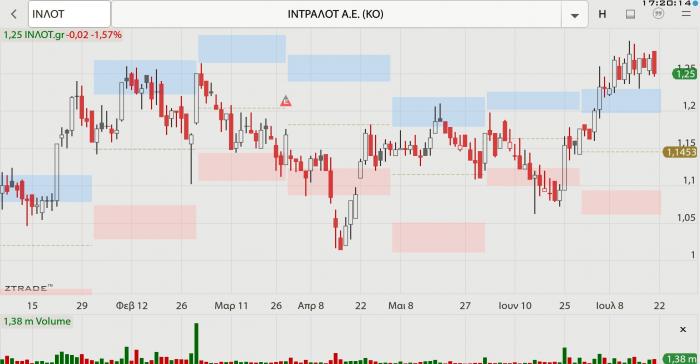 -- Intralot: «Βροχή» συναλλαγών την Παρασκευή με τη μετοχή να κινείται διορθωτικά κλείνοντας με πτώση -1,57%. Με ενδιαφέρον αναμένεται η συνέχεια, καθώς η μετοχή κρατά με άνεση τα υψηλά 6ετίας στα οποία βρίσκεται, με τη φημολογία να κάνει λόγο για επερχόμενες επιχειρηματικές εξελίξεις. Στο +18,83% από την αρχή του έτους, στο +83,82% η απόδοση 52 εβδομάδων.
