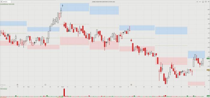-- Jumbo: Δυναμική αντίδραση την Παρασκευή με +2,18% δημιουργώντας προσδοκίες για περαιτέρω κάλυψη του εδάφους που χάθηκε τους προηγούμενους μήνες. Σημειώνεται ότι αρχές Σεπτεμβρίου η Jumbo αποφάσισε νέο πρόγραμμα επαναγοράς ιδίων μετοχών, θέτοντας ως μέγιστη τιμή αγοράς τα 27,20 ευρώ ανά μετοχή, τιμή που κατά διαβολική σύμπτωση είναι ακριβώς ίση με την τιμή στην οποία ο κ. Βακάκης πούλησε πακέτο μετοχών της εταιρείας του σε επενδυτές.