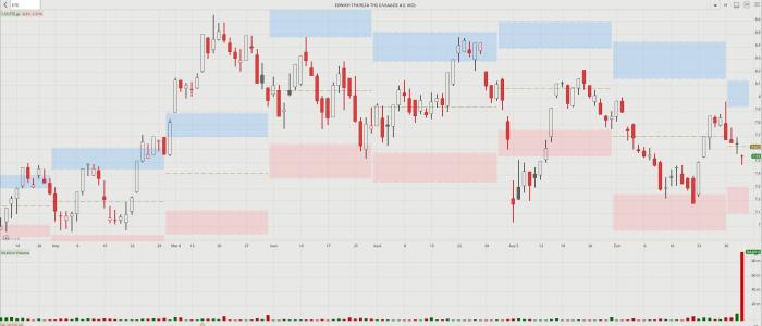 -- Εθνική Τράπεζα: Το ξεκίνημα της συνεδρίασης χθες αποτέλεσε ψυχρολουσία, με τη μετοχή να υποχωρεί κάτω και από την τιμή του placement, ωστόσο στα επίπεδα αυτά βγήκαν εντολές αγοράς και μαζεύτηκαν πολλά χαρτιά. Οι ανεκτέλεστες εντολές αγοράς 1.400.000 τεμαχίων στο κλείσιμο «μυρίζουν» επερχόμενη ανοδική αντίδραση. Σημειώνεται ότι η αύξηση του free float οδηγεί σε αύξηση του ειδικού βάρους της ΕΤΕ στη διαμόρφωση δεικτών (Γενικός Δείκτης, FTSE/Russell) γεγονός που θα πυροδοτήσει σημαντικές εισροές κεφαλαίων από παθητικά χαρτοφυλάκια. Στο -3,89% οι απώλειες της μετοχής στις τελευταίες έξι συνεδριάσεις.