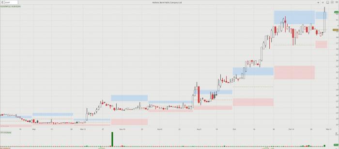 -- Eurobank: Το ίδιο ισχύει και εδώ. Η τράπεζα επίσης ανακοίνωσε ισχυρά κέρδη (κέρδη ανά μετοχή 0,331 ευρώ), ενώ επιπλέον ανακοίνωσε την απόκτηση επιπλέον 12,8% στην Ελληνική, ανοίγοντας το δρόμο για νέα δημόσια πρόταση με προοπτική συγχώνευσης. Σημειώνεται ότι με ποσοστό 75% και άνω μπορεί να αποφασιστεί συγχώνευση και πλέον η Eurobank ελέγχει το 68,81% της Ελληνικής.