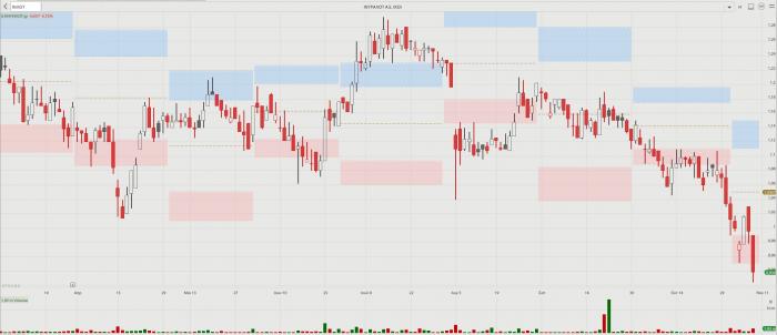 -- Intralot: «Πάρε να έχεις»: Κάπως έτσι αντιμετώπισε τους αγοραστές χθες ο πωλητής στην Intralot, με τη μετοχή να δέχεται ισχυρότατες πιέσεις κλείνοντας στο 0,939 ευρώ με πτώση -5,72% ενώ κατά τη διάρκεια της συνεδρίασης έφτασε και μέχρι τα 0,925 ευρώ, καταγράφοντας απώλειες άνω του -7%. Το «χώσιμο» συνοδεύτηκε από υψηλό όγκο συναλλαγών και η εν γένει συμπεριφορά της μετοχής δεν δημιουργεί καθόλου εμπιστοσύνη, τουλάχιστον βραχυπρόθεσμα. Φαίνεται πως είναι στο έλεος των πωλητών και το διάγραμμα τα λέει όλα.