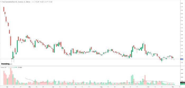 Η μετοχή με τιμή εισαγωγής 4,70 ευρώ στα τέλη Μαρτίου, βρίσκεται 7 μήνες μετά χαμηλότερα κατά 30% περίπου και στα 3,20 ευρώ.