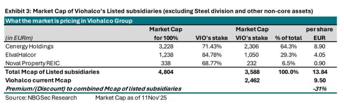 Επιπλέον η NBGSecurities εντόπισε αυτή τη στρέβλωση και ξεκίνησε την κάλυψη της Viohalco δίνοντας τιμή στόχο τα 11,30 ευρώ. Υπολογίζει και discount, καθώς οι εταιρείες συμμετοχών παραδοσιακά διαπραγματεύονται με μία έκπτωση, αλλά και πάλι υπάρχει παρά την άνοδο, πρόσθετο περιθώριο ανόδου. Πλέον η μετοχή κοιτάζει κατάματα τα 10 ευρώ.