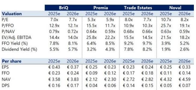 Το μεγαλύτερο περιθώριο ανόδου 56% το έχουν Trade Estates (κορυφαία επιλογή) και Premia Properties. Μεγάλα όμως είναι και τα περιθώρια ανόδου των άλλων και συγκεκριμένα 36% για τη Noval και 24% για τη BriQ η οποία όμως έχει χαμηλότερο discount έναντι των άλλων. H Trade Estates έγραψε σήμερα για πρώτη φορά φέτος τιμή πάνω από τη δημόσια εγγραφή.