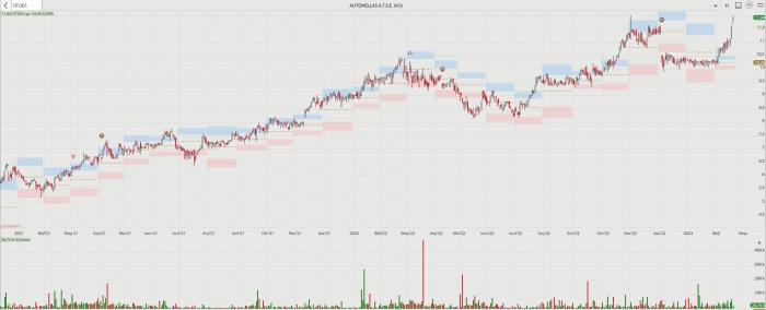 -- Autohellas: Έκτη σερί ανοδική συνεδρίαση χθες, ενώ από την αρχή του Φεβρουαρίου ενισχύεται σε ποσοστό 15,92% και οδεύει για μετοχή του μήνα. Έκλεισε στα 11,94 ευρώ που είναι νέα ιστορικά υψηλά, με την αποτίμηση στα 580 εκατ. ευρώ για πρώτη φορά στην 23χρονη παρουσία της στο Χ.Α. καθώς εισήλθε στις 30 Αυγούστου του 1999. Αυτά τα 23 χρόνια έχει μοιράσει πολύ σημαντικά μερίσματα, ενώ από την ίδρυσή της, τυπικά το ‘74 αλλά ουσιαστικά από το 1968, δεν έχει ζημιογόνα χρήση! Θυμίζουμε πως τον Ιούνιο του 2019 η διοίκηση προχώρησε σε split μετοχών σε αναλογία τέσσερις νέες για κάθε μία παλαιά ώστε να «ελαφρύνει» τη μετοχή. Δηλαδή θα ήταν πάνω από τα 40 ευρώ αν δεν είχε γίνει το split…