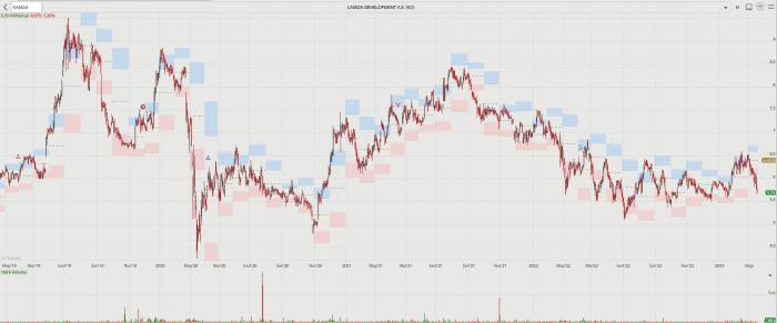 Η πορεία της μετοχής της Lamda Develpment Φεβρουάριος 2019 - 15 Μαρτίου 2023