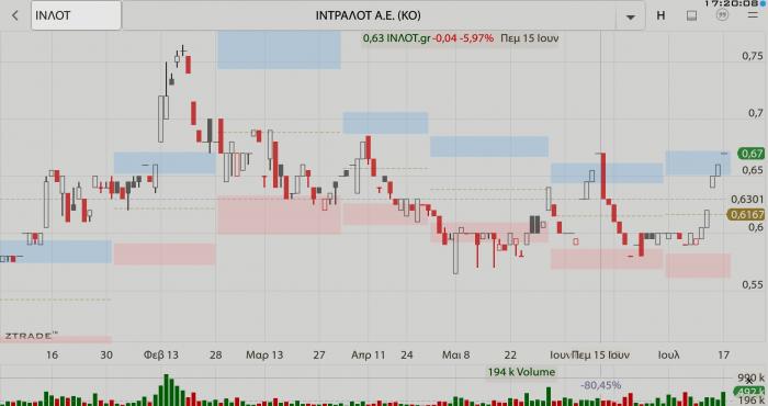 -- Intralot: Πέμπτη συνεδρίαση ανόδου για την Intralot και μάλιστα χθες κινήθηκε κόντρα στη γενικευμένη διόρθωση. Το αξιοσημείωτο ωστόσο για όσους παρακολουθούν τη μετοχή δεν είναι η πέμπτη διαδοχική συνεδρίαση ανόδου αλλά το σκούπισμα της μετοχής. Φαίνεται ότι μετά από καιρό υπάρχει ουσιαστικό αγοραστικό ενδιαφέρον.