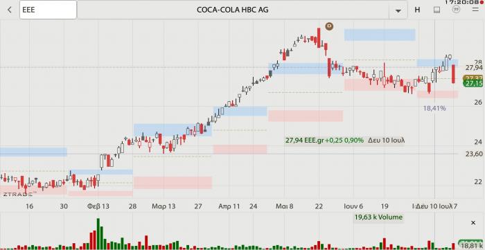 -- Coca Cola HBC: Αρνητικά στην ψυχολογία της αγοράς που ήταν και η κύρια αιτία να «κρεμάσει» εξ αρχής ο Γενικός Δείκτης επέδρασε η μεγάλη πίεση στη μετοχή της Coca Cola HBC που τόσο στο χρηματιστήριο Αθηνών, όσο και Λονδίνου, έκλεισε με σημαντικές απώλειες. Το διάταγμα Πούτιν για την κρατικοποίηση των ρωσικών θυγατρικών της Danone και της Carlsberg ήταν η κύρια πηγή προβληματισμού, καθώς το ίδιο θεωρητικά μπορεί να συμβεί σε οποιαδήποτε θυγατρική ξένου ομίλου στη Ρωσία. Η Coca Cola HBC έχει κρατήσει ανοικτά όλα τα εργοστάσιά της στη Ρωσία και παράγει αναψυκτικά με τοπικά σήματα, μετά τη διακοπή της παρουσίας της Coca Cola. Η απειλή κρατικοποίησης από τις ρωσικές αρχές ενδέχεται να επιταχύνει την έξοδο όσων δυτικών εταιρειών έχουν μείνει στη Ρωσία, εκτιμούν αναλυτές, αν και στην περίπτωση της Coca Cola HBC αυτό είναι δύσκολο, αφού η εταιρεία διατηρεί μεγάλο αριθμό εργοστασίων και εξακολουθεί να αντλεί σημαντικό μέρος των εσόδων της από τη Ρωσία. Η μετοχή στην Αθήνα έφτασε να χάνει 5,01% ενώ έκλεισε τελικώς με πτώση 4,94% στα 27,51 ευρώ, ενώ διακινήθηκε όγκος 72 χιλ. τεμαχίων μέσω τζίρου 1,97 εκατ. ευρώ. Στα 10,11 δισ. ευρώ η κεφαλαιοποίηση.
