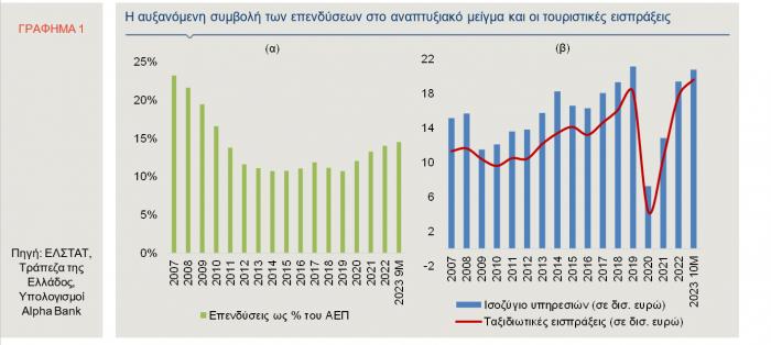 Η συνεισφορά των τουριστικών εισπράξεων στην ελληνική οικονομία είναι πολλαπλή, καθώς, μεταξύ άλλων, ενισχύουν τόσο τις εξαγωγές υπηρεσιών -συγκρατώντας τη διεύρυνση του ελλείμματος του ισοζυγίου τρεχουσών συναλλαγών- όσο και την ιδιωτική κατανάλωση. Η επιμήκυνση της τουριστικής περιόδου, η κατανομή των τουριστικών ροών σε περισσότερες περιφέρειες, η υλοποίηση νέων έργων υποδομών και η κάλυψη των ελλείψεων ανθρώπινου δυναμικού στα ξενοδοχεία της χώρας συνιστούν ορισμένες προκλήσεις, οι οποίες δύνανται να αναβαθμίσουν περαιτέρω το τουριστικό προϊόν της χώρας, ενισχύοντας τις, ήδη, ευοίωνες προοπτικές.