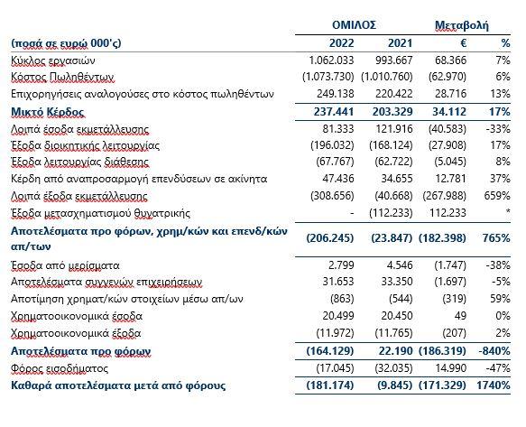 Χωρίς την πρόβλεψη των €253 εκατ., ο Όμιλος κατά την χρήση 2022 θα απεικόνιζε ενοποιημένα καθαρά κέρδη ύψους 71,8 εκατ. ευρώ περίπου.