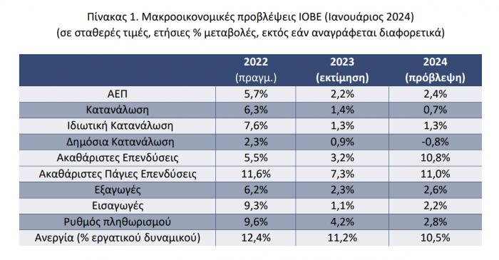 Ρυθμό ανάπτυξης 2,4% εκτιμά ότι μπορεί να επιτύχει η ελληνική οικονομία το 2024 το ΙΟΒΕ, στην τακτική έκθεσή του, ο οποίος όμως μπορεί να επιτευχθεί εφόσον υπάρξουν κάποιες πολύ βασικές προϋποθέσεις, με μία από τις κυριότερες την ορθή χρήση των κεφαλαίων του Ταμείου Ανάκαμψης.