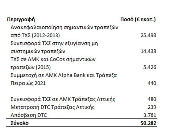 Τα κεφάλαια που διοχέτευσε το Δημόσιο για τη διάσωση των τραπεζών