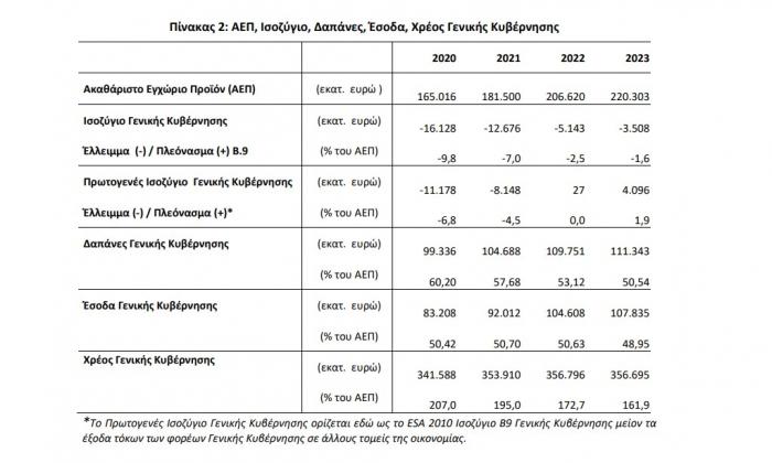 Οι νέοι στόχοι στο μεσοπρόθεσμο που κατατίθεται στην Κομισιόν την Παρασκευή: στο 2,3% ο ρυθμός ανάπτυξης φέτος, ενώ μειώνεται στο 4,5% η πρόβλεψη για τον πληθωρισμό. Πρωτογενές πλεόνασμα 2% το 2024 και 2,2% από το 2025.