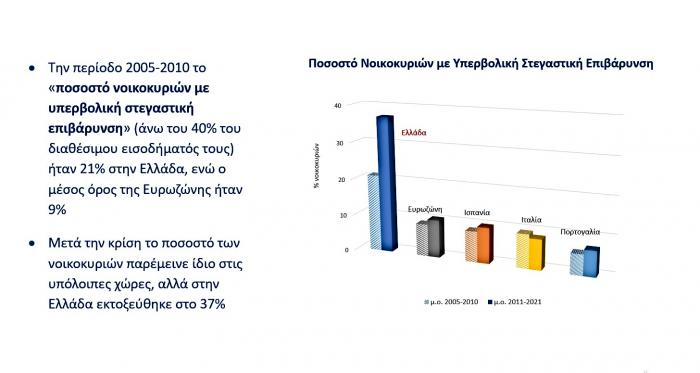 Καθοριστικά επηρεάζουν ακόμα η τεράστια επιβάρυνση των νοικοκυριών με δαπάνες στέγασης σε σχέση με τις άλλες χώρες της Ευρωζώνης που καθιστά εξαιρετικά δύσκολη την αποταμίευση αλλά και η ατελείωτη αιμορραγία των νοικοκυριών για την κάλυψη δαπανών υγείας και εκπαίδευσης, τα οποία θεωρητικά προσφέρει δωρεάν το δημόσιο. Είναι προφανές ότι δεν μένει τίποτα για αποταμίευση όταν οι οικογένειες είναι αναγκασμένες να δαπανούν σημαντικούς πόρους σε φροντιστήρια ακόμα και στην πρωτοβάθμια εκπαίδευση.
