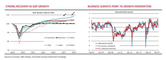 Σε αναβάθμιση της εκτίμησής της για τον ρυθμό ανάπτυξης της ελληνικής οικονομίας στο 2,3% από 1,9% που ήταν πριν προχωρά η UniCredit σε έκθεσή της, τονίζοντας ότι πραγματοποιεί αυτήν την κίνηση λόγω μιας ισχυρότερης από την αναμενόμενη μεταφερόμενης επίδρασης, ενώ διατηρεί αμετάβλητη την πρόβλεψή στο 1,7% για το 2025.
