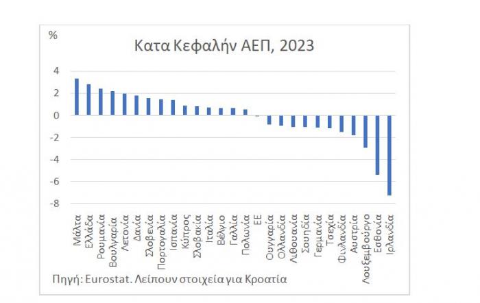 6. Αναθεωρήθηκε προς τα πάνω η ανάπτυξη του κατά κεφαλήν ΑΕΠ για το διάστημα 2022-23 στο 2,8% από 2,5%, η δεύτερη καλύτερη επίδοση στην ΕΕ-27. Η σωρευτική ανάπτυξη του κατά κεφαλήν πραγματικού ΑΕΠ αναθεωρήθηκε προς τα πάνω στο 8,7% από 7,8% για το διάστημα 2019-23.