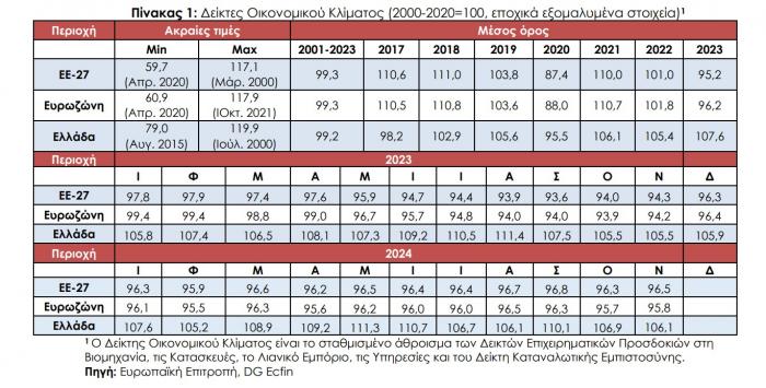 - στην Καταναλωτική Εμπιστοσύνη, οι αρνητικές προβλέψεις των νοικοκυριών για την οικονομική κατάσταση της χώρας περιορίστηκαν, ενώ αντίστοιχα διατηρήθηκαν οι αντίστοιχες για τη δική τους οικονομική κατάσταση. Παράλληλα, ενισχύθηκαν σημαντικά οι προβλέψεις για μείζονες αγορές ενώ διατηρήθηκε η πρόθεση για αποταμίευση.