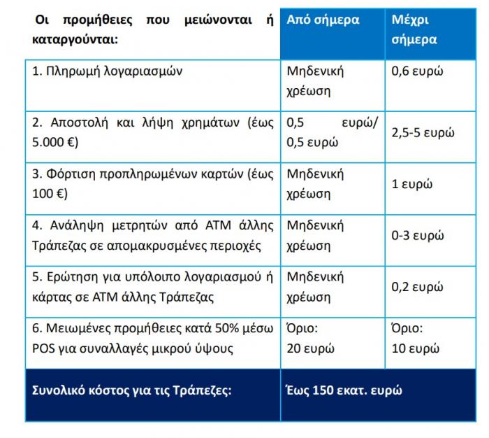 Οι τραπεζικές προμήθειες που καταργούνται ή μειώνονται είναι οι εξής: