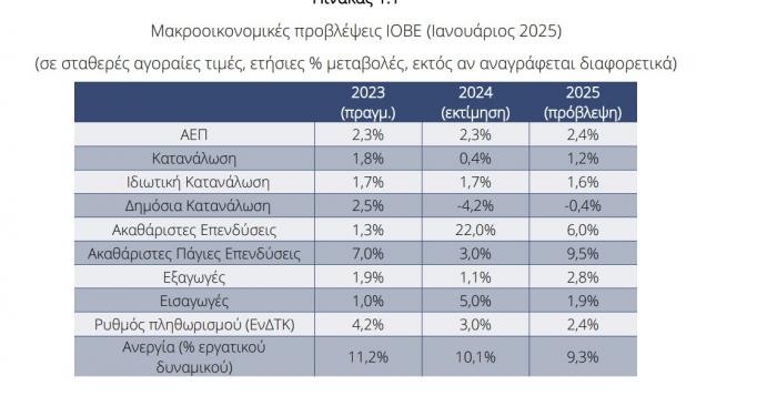 Σταθερές διατηρεί το ΙΟΒΕ τις προβλέψεις του για την οικονομική ανάπτυξη του 2025 στην Ελλάδα, σημειώνοντας, ωστόσο, την υψηλή αβεβαιότητα που επικρατ4ί στο διεθνές περι8βάλλον, ιδιαίτερα σε ό,τι αφορά την πολιτική Τραμπ και τις επιπτώσεις της στην παγκόσμια οικονομία.