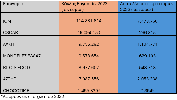 Οι μεγαλύτερες εταιρείες του κλάδου σημείωσαν τις παρακάτω επιδόσεις το 2023: