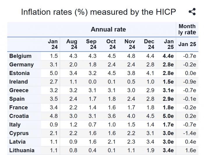 Σύμφωνα με την ευρωπαϊκή στατιστική υπηρεσία ο πληθωρισμός στην ευρωζώνη ενισχύθηκε στο 2,5% τον Ιανουάριο από 2,4% τον Δεκέμβριο, στοιχείο που ενισχύει την απόφαση της ΕΚΤ την προηγούμενη εβδομάδα να προχωρήσει στην πέμπτη διαδοχική μείωση επιτοκίων.