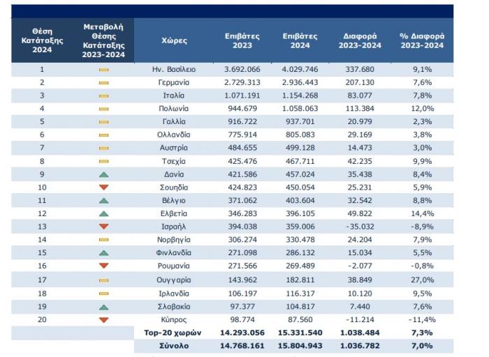Τοp-20 Χωρών Προέλευσης στα Περιφερειακά Αεροδρόμια 2023-2024