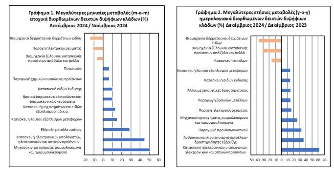 Ενώ, ο εποχικά διορθωμένος γενικός δείκτης παρουσίασε αύξηση 2,4% τον Δεκέμβριο 2024 σε σύγκριση με τον αντίστοιχο δείκτη του Νοεμβρίου 2024.