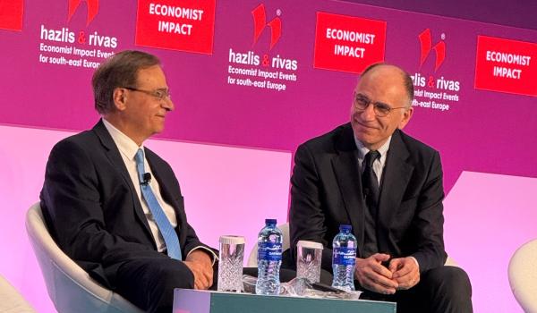 Ο κ. Χαρδούβελης συμμετείχε σε πάνελ με τον πρώην πρωθυπουργό της Ιταλίας, Ενρίκο Λέτα, και εστίασε στη διαρθρωτική υστέρηση της Ευρώπης έναντι των ΗΠΑ στον τομέα της παραγωγικότητας και της οικονομικής ανάπτυξης.