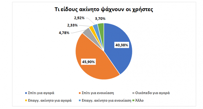 Αντίστοιχα, κίνητρα για ενοικίαση κατοικίας είναι κατά 22,8% η αλλαγή τοποθεσίας, κατά 19,9% η μετακόμιση από το πατρικό και κατά 19,7% η βελτίωση συνθηκών, ενώ το 18,5% αφορά την αναζήτηση χαμηλότερου ενοικίου και το 17,9% άλλο σκοπό. Τέλος, σκοπός αγοράς οικοπέδου είναι κατά 47,6% η ανέγερση οικοδομής, 22,4%η επένδυση και 11,8% η γεωργική εκμετάλλευση, ενώ το 6,4% αφορά άλλο σκοπό.