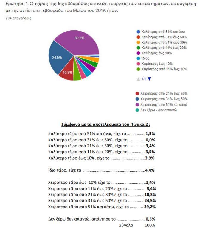 Με αφορμή την ανακοίνωση των αποτελεσμάτων της έρευνας του Ε.Σ.Α, ο Πρόεδρος Σταύρος Καφούνης, δήλωσε: «η αγορά δυστυχώς μίλησε και επιβεβαίωσε τις προβλέψεις μας. Επισημαίναμε ότι όταν η Γερμανία κατέγραψε την πρώτη εβδομάδα πτώση τζίρου 35%, ήταν αναμενόμενο και στην Ελλάδα να έχουμε αντίστοιχα αποτελέσματα. Εκφράζοντας πλέον τα όσα μικρές αλλά και μεγάλες επιχειρήσεις δήλωσαν στην συγκεκριμένη έρευνα, είναι επιτακτική η ανάγκη λήψης μέτρων για την επέκταση της μείωσης ενοικίου έως το τέλος του έτους, την διευκόλυνση της χρηματοδότησης όλων των μικρομεσαίων επιχειρήσεων και τις στοχευμένες φοροελαφρύνσεις που θα μειώσουν τα λειτουργικά τους έξοδα.