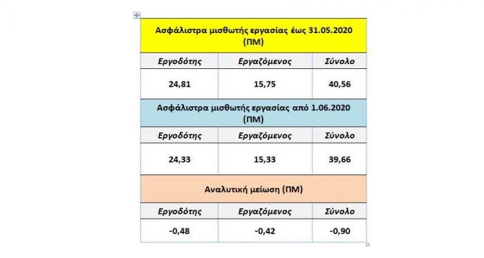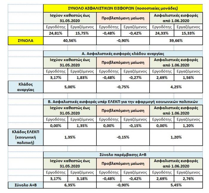 Μετά από αυτή τη μείωση, το σύνολο των ασφαλιστικών εισφορών έχει ως ακολούθως: