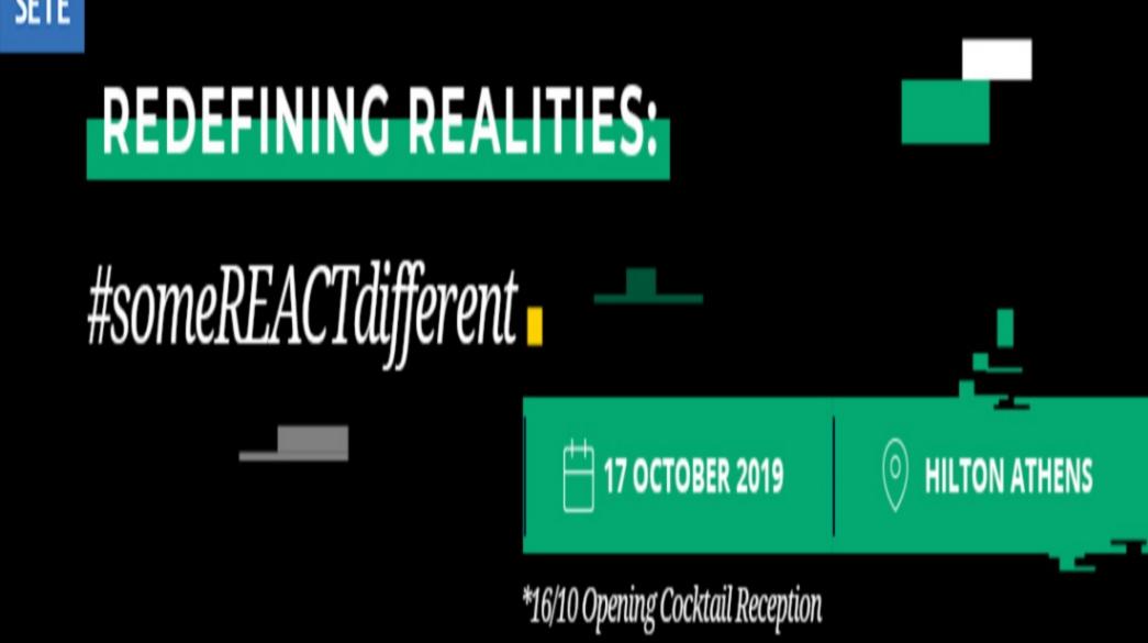 Με τίτλο «Redefining Realities: #someREACTdifferent» θα πραγματοποιηθεί, στις 17 Οκτωβρίου, στην Αθήνα, το ετήσιο συνέδριο του ΣΕΤΕ. Σύμφωνα με την επίσημη ανακοίνωση, για μια ακόμη χρονιά, προσωπικότητες του επιχειρηματικού και τουριστικού κόσμου θα μεταδώσουν ιδιαίτερες ιστορίες, που εμπνέουν καινοτόμες ιδέες, αλλά και βέλτιστες πρακτικές διαχείρισης προορισμών και στρατηγικής ανάπτυξης.